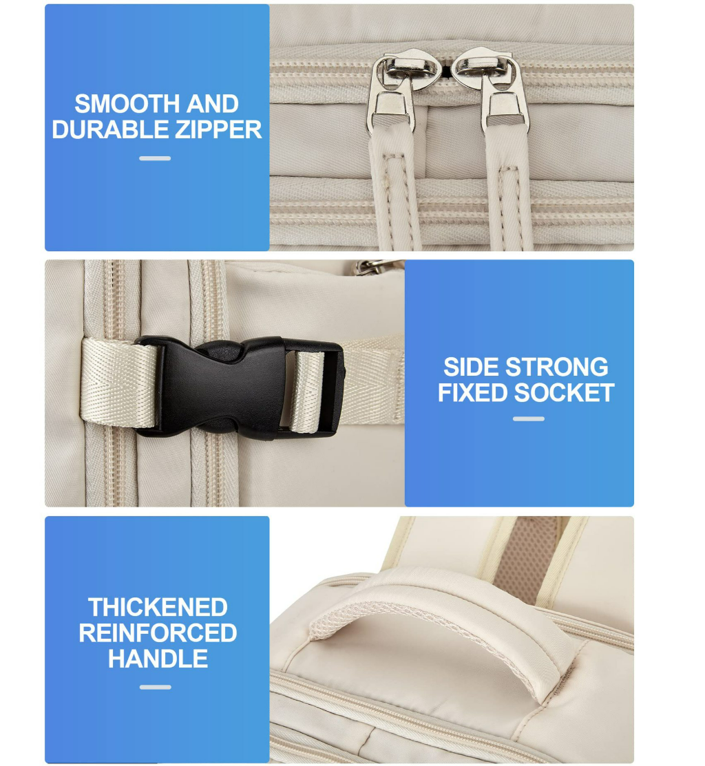 Organized Compartmentalization: A spacious main compartment easily stores bulkier items like clothing and footwear, while multiple dedicated sections keep essentials orderly and accessible—no more rummaging.